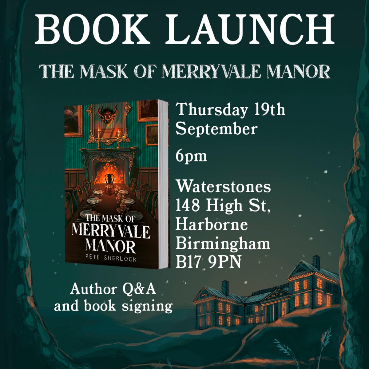 So excited to be launching The Mask of Merryvale Manor at Waterstone's in Harborne this week. Come along from 6pm for a Q&A and grab a signed copy.
